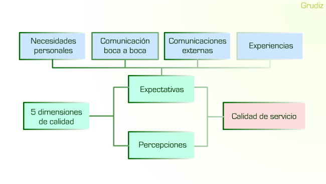 Como punto de partida el modelo tuvo que plantear su propia definición de calidad y para ello se basó en la diferencia que se produce entre las percepciones de los clientes de un servicio y las expectativas que se habían formado previamente a la prestación.