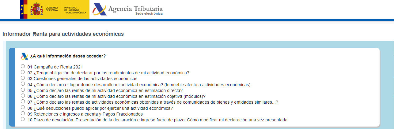 La Agencia Tributaria ha puesto en marcha el informador de la RENTA 2021, una herramienta muy útil que nos va a resolver las dudas que nos puedan surgir mientras estamos confeccionando la declaración. Y nos servirá tanto si somos trabajadores por cuenta ajena como si somos autónomos, ya que tiene un apartado específico para actividades económicas.
