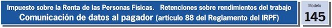 Más Información | BOE - Resolución de 3 de enero de 2011, del Departamento de Gestión Tributaria de la Agencia Estatal de Administración Tributaria, por la que se aprueba el modelo 145 (PDF) Descarga | AEAT - Modelo 145 (PDF) En Pymes y Autónomos | Nuevo modelo 145: comunicación de datos al pagador