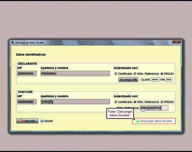 La versión del programa para este ejercicio permite la descarga conjunta de todos los archivos de los miembros de la unidad familiar, de esa manera disponiendo del certificado, del número de referencia o del PIN24 podremos incorporar los datos y realizar los cálculos correspondientes.