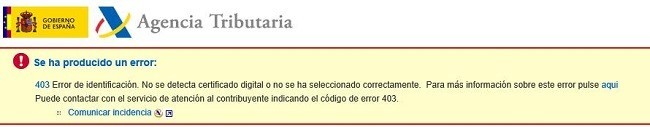 Y es que el error "403 byrule" según la Agencia Tributaria es un error de identificación que se produce cuando se intenta acceder a una opción que requiere certificado electrónico y el navegador no detecta que hay uno instalado o bien no se selecciona adecuadamente.