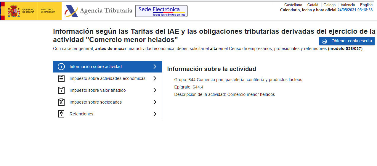 Más información | Buscador de actividad y sus obligaciones tributarias
