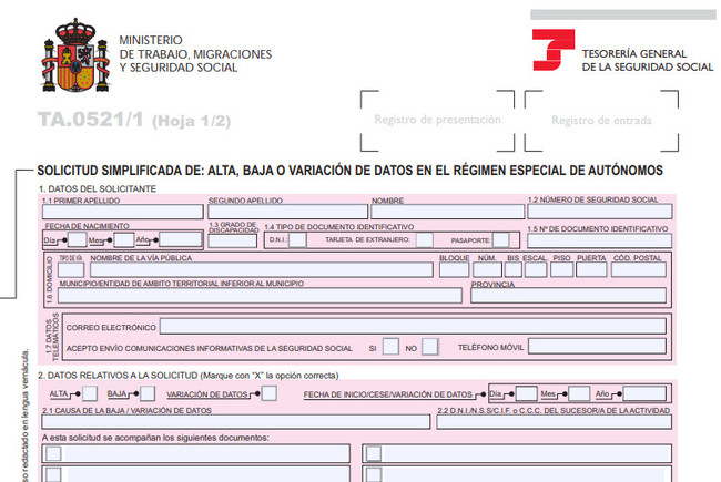 En todos los casos es necesario rellenar y firmar el documento TA.0521-1, la solicitud simplificada del alta, baja o variación de datos. Se puede firmar tanto de forma electrónica en caso elegir presentar el documento a través de correo electrónico o a través del propio registro.