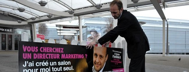 Un francés ha realizado una campaña publicitaria con un coste de 70.000 euros con el objetivo de conseguir un trabajo. Dicha campaña ha consistido en la publicidad en vallas, la realización de un stand en el Palacio de Congresos para recibir a los hipotéticos empresarios que se interesaran en contratarle y algunos gastos más. El montante total asciende a 70.000 euros a valor de mercado, cantidad que no ha pagado puesto que ha recurrido a empresas amigas en el sector de la publicidad y el marketing y como resultado final, una sola entrevista que no ha prosperado.