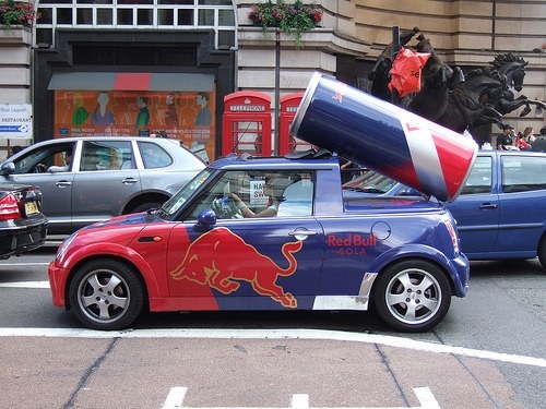 El primer punto a tener en cuenta es la originalidad de nuestro anuncio. Mirad el coche que aparece en la imagen de este post. Puede que no nos guste el RedBull, nos parezca caro o tengamos cualquier otro motivo para no beberlo. Sin embargo, esa lata gigante llama la atención de cualquiera. La idea no es gastarnos una millonada en tunear nuestro vehículo, sino exprimirnos el cerebro para encontrar una fórmula original que llame la atención de los transeuntes.