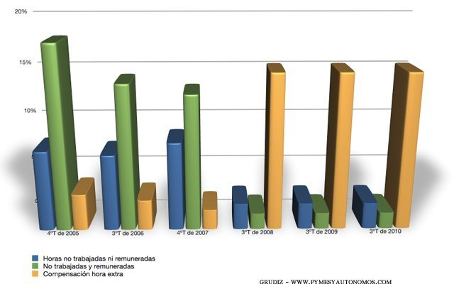 La conclusión a simple vista parece evidente. De las horas no trabajadas han perdido relevancia tanto las horas no remuneradas como las remuneradas y se ha experimentado un notable crecimiento en la compensación de horas extra que ya son unas de las más relevantes. Las ausencias totales han disminuido, lo cual ayuda a incrementar este porcentaje.