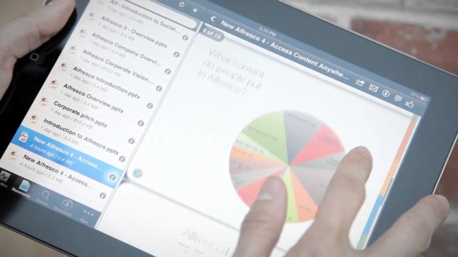 Hace un par de días se lanzó Alfresco Entreprise 4, la nueva versión del gestor de contenidos más social y adaptado a los tablets, como principales novedades. Gracias a la nueva interfaz en HTML5 se facilitará el trabajo desde tablets y móviles y la integración con herramientas de productividad de negocio como GoogleDocs, Microsoft Office y Quickoffice HD.