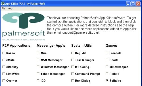 AppKiller es gratuito, funciona en Windows y, aunque está discontinuado, se puede encontrar fácilmente por Internet, bloquea un gran número de programas, tanto P2P como mensajería instantánea, utilidades del sistema, navegadores, utilidades de grabación y los juegos incorporados de Windows. Si este tipo de software os está dando guerra, esta es una alternativa más con la que defenderos.