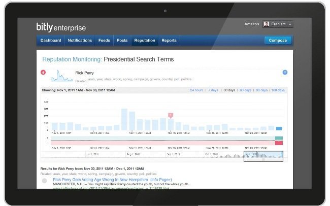 Una de las cuestiones que inquieta a las empresas es saber si el esfuerzo y tiempo que están invirtiendo en las redes sociales está dando buenas resultados. Para comprobarlo necesitamos herramientas de medida y monitorización que nos ayuden en esta tarea. Seguro que muchos conocéis Bitly, como un acortador de enlaces muy popular en Twitter, lo que no es tan conocido es Bitly Enterprise 2.0, solución para la monitorización de redes sociales que nos ofrece.
