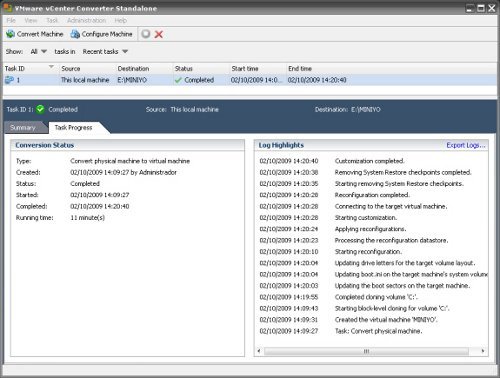 Se trata de ejecutar esta conversión que nos transformará directamente el equipo en máquina virtual. Esta conversión abstrae el hardware que utiliza el portátil, de esta manera podemos instalar la máquina virtual en un equipo de sobremesa o en otro equipo portátil. Con ello nos aseguramos de seguir trabajando con normalidad sin ningún problema.