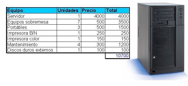 Sin embargo a la hora de valorar el total de la inversión que necesitamos hacer los costes difieren, puesto que el coste total se irá a algo menos de quince mil euros en los cuatro años en los que hemos puesto de periodo de amortización, por lo que podemos decir que el coste de un puesto informático será de unos trescientos setenta euros al año o lo que es lo mismo algo más de veinte euros al mes por puesto.