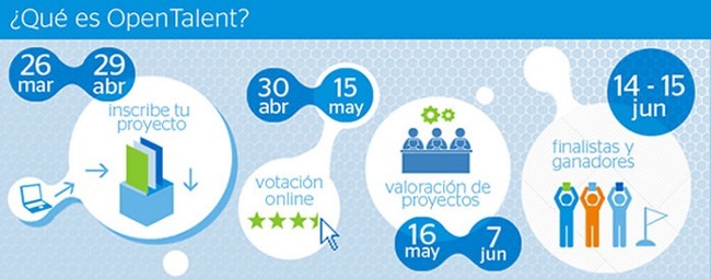 Open Talent es un programa de apoyo a los emprendedores avalado por BBVA y la Red Innova que busca dar visibilidad al mayor número de proyectos relacionados con el mundo del emprendimiento, la tecnología y los negocios. En su cuarta edición de los premios BBVA Open Talent 2012 ya es posible realizar las inscripciones para dar a conocer los proyectos en los que están trabajando vuestras empresas.