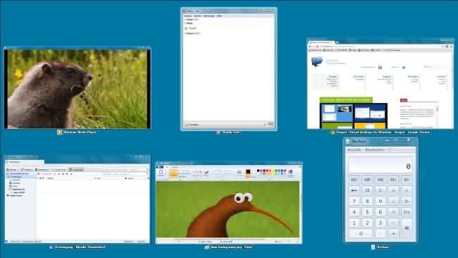 Desktops (Microsoft): este software está limitado solo a cuatro escritorios virtuales. Aparte de las teclas de acceso rápido para seleccionar el escritorio que deseas ver, la única otra opción que trae es un avance rápido de los cuatro escritorios haciendo clic en el icono del área de notificación. Es un ejecutable independiente, y es muy ligero. Desktops es gratuito y compatible con Windows XP/Server 2003 o superior.