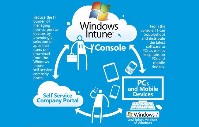 La nueva versión de Windows Intune permitirá el uso de cuatro dispositivos móviles asociados a un equipo por un coste de unos nueve euros al mes por equipo administrado. Se integrará tanto con el Directorio Activo de Windows Server como con Microsoft Exchange, lo que permitirá administrar dispositivos móviles incluso si estos no son propiedad de la empresa, facilitando de esta manera la llegada del BYOD a muchas empresas.
