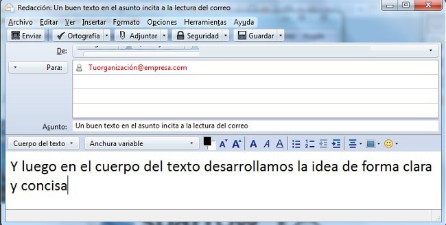 Pero sobre todo si somos de los que utilizamos el correo como base de datos, queremos tener siempre a mano el mensaje que enviamos o que recibimos para tener claro por qué tomamos tal decisión en nuestra empresa el asunto es fundamental. El asunto debe ser corto e indicativo del contenido del correo.