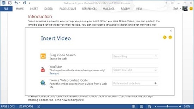 Que los elementos multimedia son cada día más utilizados en las empresas no es ningún secreto. Por eso uno de los puntos fuertes que se integran con el nuevo Office 2013 será la inserción de vídeos desde servicios externos como YouTube o Bing. Se trata de mejorar la experiencia que los usuarios tienen en Word con estos formatos.
