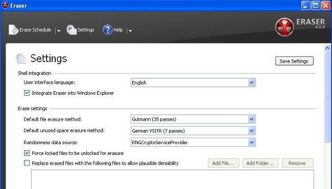 Muchas empresas utilizan destructores de documentos, trituradoras que hacen prácticamente imposible reconstruir el documento original, de manera que los datos teníamos queden destruidos. Esta es una precaución básica, puesto que la mayoría de las fugas de datos que se detectan en las empresas se realizan en papel. El equivalente a un triturador para los archivos informáticos sería una aplicación como Eraser. Permite el borrado seguro de datos para las empresas de forma eficiente.
