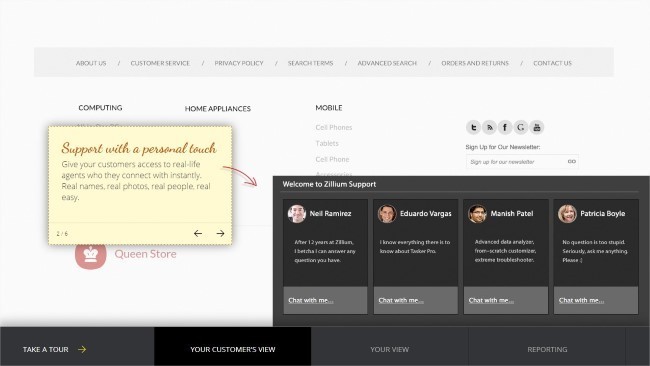 Zoho LiveDesk: es la manera más fácil para conectarte. Menos discreto que una llamada telefónica, más privado que un mensaje en el foro y menos formal que un correo electrónico, es ideal para los clientes que necesitan soporte. Con LiveDesk puedes agregar a tus clientes a tu lista de amigos, y concederles acceso instantáneo a un soporte técnico más fácil y personalizado. Puedes probarlo durante 30 días y luego planes: "Gratuito", "Básico", "Profesional" y "Enterprise". Mas útil para ti, ya que respondes y atiendes a más preguntas, y más clientes, ya que transformas los tickets de soporte en soluciones, todo ahorrando bastante tiempo.