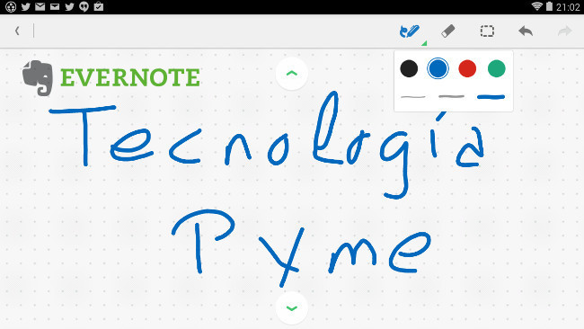 Ayer Evernote presentó una actualización en sus aplicaciones para Andorid, añadir notas con escritura manual, muy interesante para el ámbito de la empresa ya que nos va a permitir dibujar esquemas, añadir pequeños dibujos, etc. o simplemente tener escaneada de forma sencilla nuestra firma para anexar a documentos, por poner varios ejemplos.