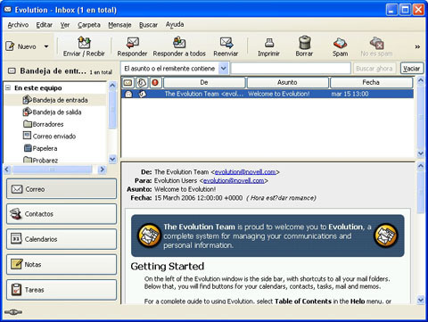 Evolution para Windows sirve como gestor de e-mail, calendario, agenda y administrador de contactos al más puro estilo de Outlook. De hecho sus interfaces son muy parecidas, por lo que si se está familiarizado con Outlook le será fácil manejar Evolution.
