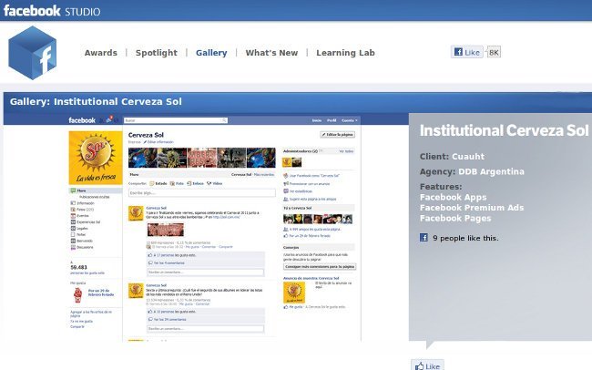 Se trata de una página en la que Facebook muestra los anuncios que han tenido más éxito en la red social. Y nos permite segmentar mucho por tipos de anuncios o campañas, afinando tanto como nos sea necesario por regiones, sector profesional, sección de Facebook donde se ha creado el anuncio, ya sea un página, en Facebook Deals o Facebook Places, por ejemplo.