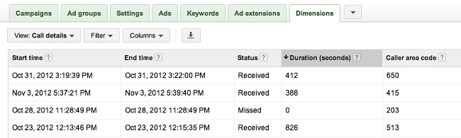 El uso de los teléfonos móviles para obtener información a través de la web pero que en muchos casos acaba con una llamada telefónica al establecimiento para concretar. Un ejemplo puede ser la consulta de restaurantes cercanos a nuestra ubicación y la llamada con la que se concreta la reserva. Para ayudar a medir los resultados ahora Google añade estadísticas sobre el uso del botón de llamadas en los anuncios móviles.