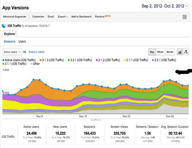 Algunos de los informes de aplicación que se pueden obtener con respecto al uso de aplicaciones son la rapidez con que los usuarios migran a la última versión de la aplicación, el efecto de migración entre las distintas versiones o cuántos usuarios se ven afectados si una versión se queda obsoleta.