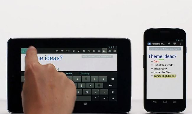 Además las nuevas aplicaciones añaden la posibilidad de editar documentos de texto que tengamos alojados en Google Drive, de manera colaborativa. Esta es una de las mejores opciones que tiene disponibles Google, puesto que podemos trabajar un documento y ver que están haciendo el resto de personas que tienen acceso al mismo. Algo importante para no pisar el trabajo que está haciendo otra persona. Personalmente es uno de los aspectos que más valoro de Google Docs.