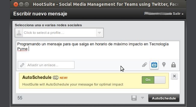 Más de una vez hemos hablado de un servicio como Hootsuite, muy útil para las empresas que desean publicar sus mensajes en más de una red social. Por ejemplo, publicar el mismo mensaje de forma simultánea en Linkedin, Facebook y Twitter. Además permite programar los mensajes, algo muy útil para fines de semana o vacaciones. Una de las últimas fucionalidades incorporadas es que Hootsuite permite programar mensajes en las redes sociales para que salgan en el momento de mayor impacto.