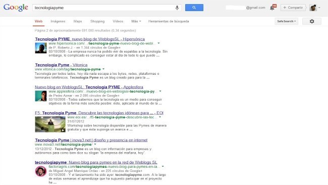 Permite a los clientes y a los potenciales clientes tener en cuenta fácilmente que una parte del contenido ha sido escrito por alguien que conocen (tu o el administrador encargado de tu empresa), y de paso consigue que sea más fácil para estos clientes encontrar los otros contenidos. Si quieres (y pienso que debes) vincular tu contenido con tu perfil de Google, Google Authorship es tu opción. Gracias a esta solución podrás darle a tu contenido un toque aun más personal al aparecer en los resultados de las búsqueda, la información del autor, nombre de la empresa, sector, etc, junto con tu enlace de contenido.
