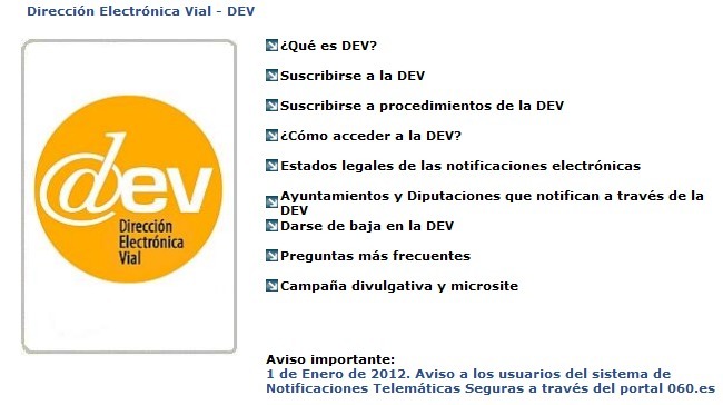 Si todavía no habéis solicitado la Dirección Electrónica Vial en la DGT para que remitan a esta dirección las notificaciones referentes a los vehículos de empresas es el momento de hacerlo, puesto que la DGT deja de notificar a través del portal 060 una vez que ya está plenamente funcional el sistema de notificaciones implantado en Noviembre de 2010.