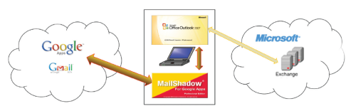 MailShadow permite sincronizar bidireccionalmente el correo electrónico, los contactos y el calendario de Google con los incorporados en Microsoft Exchange, pudiendo seguir utilizando Outlook ante una eventual caida del servidor de Exchange. Comentan que en poco más de 5 minutos toda la información de nuestra cuenta de Exchange es sincronizada con una cuenta estandar o premium de Google.