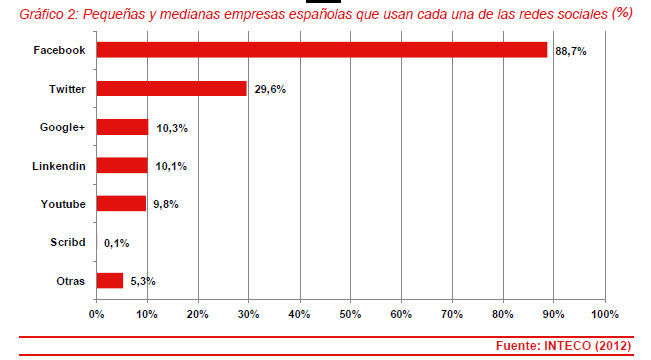 Y dentro de las redes sociales, la más utilizada y con gran diferencia es Facebook que cuenta con un 88,7% las empresas que disponen de perfiles o páginas en estas redes sociales. Muy de lejos siguen Twitter con un 29,6%, Google + con un 10,3 % o Linkedin con un 10,1%. El grado de satisfacción que manifiestan empresas sobre su uso de las redes sociales llega casi al notable, con 6,9 puntos sobre 10.