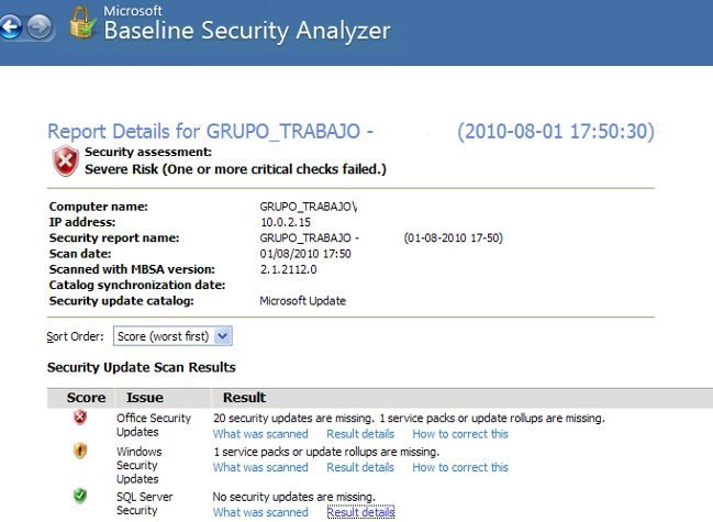 Microsoft Baseline Security Analizer, comprueba la vulnerabilidad de Windows
