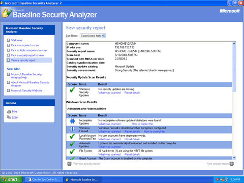 Mas Información | Microsoft Baseline Security Analyzer