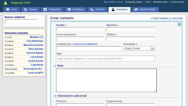 Características de Negocas CRM