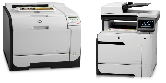 HP LaserJet Pro M351 y M451 con velocidades de impresión que van desde los 18 ppm para la primera y 21 ppm en el segundo caso. En el primer caso carece de conectividad de red, por lo que es más adecuada como impresora de puesto. La segunda podemos integrarla como impresora de red e imprimir desde móviles compatibles con la tecnología ePrint.
