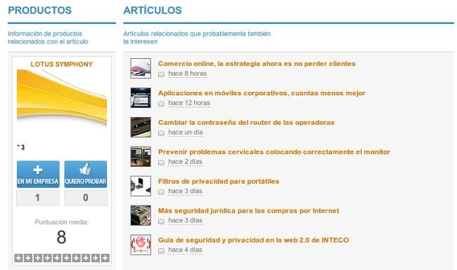 Las novedades que ahora encuentras en la página de cada artículo son: * Más y mejores opciones para compartir en redes y sitios sociales. Nos gusta especialmente el botón para compartir en Twitter, que queda en la parte superior junto con el de Facebook, dos de las redes más utilizadas. * Mejor navegación entre post anteriores y posteriores, todos agrupados... * Categorías en la parte superior, por encima del título, donde nos parecen más prácticas que antes. * Más contenidos relacionados con la temática, categoría o tipo de asunto del post, con un nuevo algoritmo más preciso. * Más información sobre la página de producto, con posibilidad de puntuar directamente y ver la que ya tiene ese producto que os interesa para la empresa.