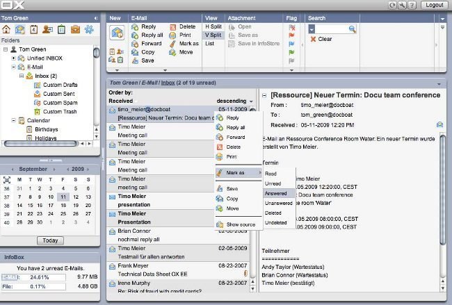 Porque la filosofía de Open Xchange es facilitar compartir calendarios, contactos, tareas, documentos y carpetas de correo electrónico dentro de una empresa. Vamos a ver algunas de sus características:
