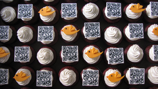 El código QR tiene que ir ligado al producto, al evento, etc. más que a una empresa en general. Es mejor poner un código QR junto al precio del Apio en una frutería que nos facilita dos o tres recetas que tienen como uso principal este ingrediente, algo que da ideas al consumidor y le incita a comprar este producto. Y no añadir la página web de la frutería que podemos promocionarla por otros métodos. O de un evento que se promociona con los cupcakes como en la imagen del post.