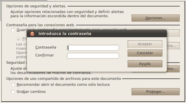 En este sentido tenemos varias alternativas que nos pueden ser de utilidad a la hora de mantener la seguridad de nuestros archivos. Podemos elegir la opción de proteger con contraseña la realización de modificaciones en el documento, con lo cual permitimos la opción de que el documento pueda leerse pero no modificarse si no se conoce la contraseña.