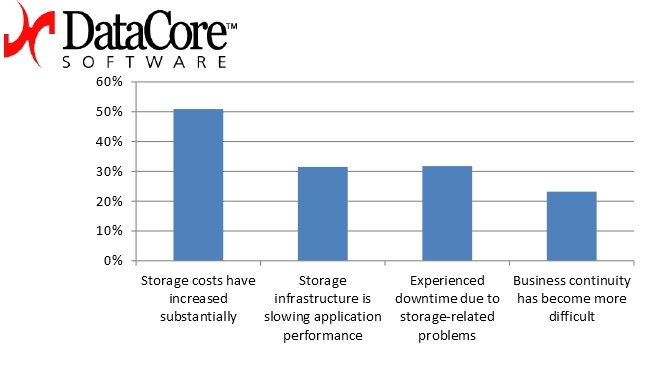 Según un reciente estudio llevado a cabo por DataCore, empresa dedicada al software de virtualización de almacenamiento, llevado a cabo con 289 responsables de infraestructuras IT de todo el mundo el rendimiento y los periodos de inactividad son las principales preocupaciones de los usuarios con la virtualización, por encima de los costes de almacenamiento para dos terceras partes de los encuestados.