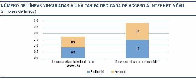 El fuerte crecimiento de banda ancha móvil duplicó el volumen de 2008, debido al aumento de líneas de transmisión de datos a alta velocidad y la fuerte penetración de los teléfonos móviles inteligentes, por lo general ligados a este tipo de tarifas. Se registran 4,2 líneas de este tipo por cada 100 habitantes.