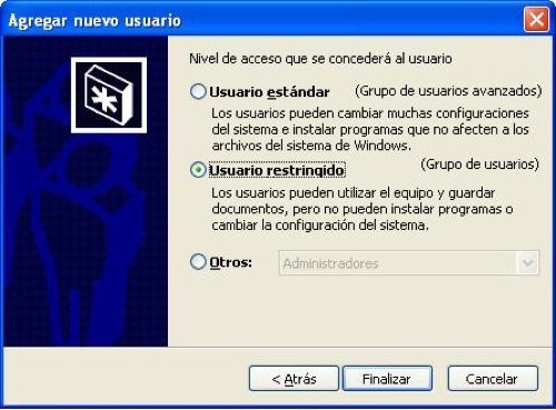 Hacerlo no es complicado, lo adecuado sería contar con un usuario que actúe como Administrador, personificado por el encargado de la instalación, y otro con un perfil Restringido que será el que emplee el usuario habitual del equipo. Esta operación se puede realizar desde el sistema de mantenimiento de usuarios ubicado en el Panel de Control de Windows, y puede evitarnos más de un quebradero de cabeza.