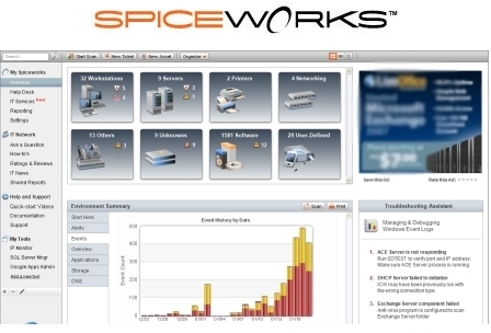 Según una empresa va creciendo, es lógico que el parque informático vaya aumentando también de tamaño. Vamos comprando nuevos equipos, nuevos servidores, sistemas de almacenamiento NAS, hardware de red,... y acabamos por tener una cantidad de "aparatos" lo suficientemente grande como para que se haga muy difícil su gestión. Para resolver esto tenemos aplicaciones de monitorización integral de la red, como puede ser la que hoy os presentamos: Spiceworks.