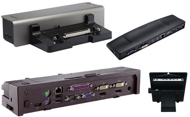 Como es el caso de HP o Dell, que nos ofrecen una amplia gama de productos, que varía en función del tipo de equipo al que van destinados, pero que en definitiva tiene una compatibilidad limitada de equipos que pueden conectarse, puesto que van ligados a determinados modelos de la marca. Conexiones USB, audio, vídeo con DVI, bahías de expansión para discos duros o para tarjetas PMCIA. Su precio suele estar entre los 180 y los 250 euros dependiendo del modelo, algo elevados para las prestaciones que nos ofrecen.