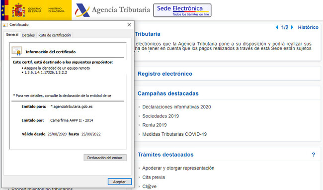 Y precisamente este año donde muchos contribuyentes pueden tener más necesidad de que les paguen cuanto antes en caso de que les salga a devolver sería previsible que se produzca un gran número de peticiones en los primeros días. Una vez que esté en marcha la versión 90 de Chrome aparecerá como certificado revocado y no permitirá el acceso a dicha página. No se trata de un problema de todos los certificados de Camerfirma, sino exclusivamente de los certificados SSL-TLS, utilizados para identificar sitios web, como el de la Agencia Tributaria.