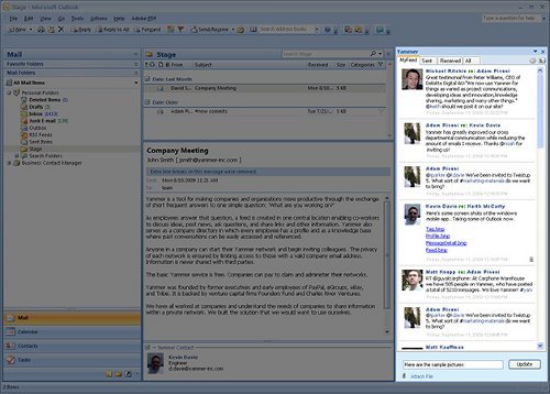 Si ayer comentamos como Microsoft ha lanzado un comunicado por Twitter anunciando Windows 7 a 30 dólares para los estudiantes hoy vamos a hablar de una interesante evolución de Yammer, el Twitter pensado para las empresas, del que también hemos hablado aquí en otras ocasiones. Se trata de un complemento que permitira que Yammer se integre con Outlook.