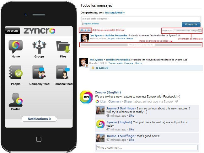 Zyncro es una alternativa bastante buena para tener nuestra red social corporativa. Hace poco Zyncro ha renovado su versión a la 3.1 y añadido aplicación móvil para iPhone como complemento para tener una buena experiencia desde estos dispositivos móviles. Entre las nuevas características que se han incluido en la nueva versión podemos destacar las siguientes: