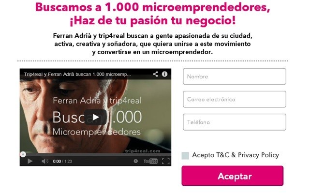 Recientemente la plataforma online trip4real ha dado a concocer (PDF) el proyecto apadrinado por uno los máximos exponentes de la marca España, el chef Ferran Adrià por el que han convocado a mil emprendedores de toda España de los sectores turismo, viajes y ocio.